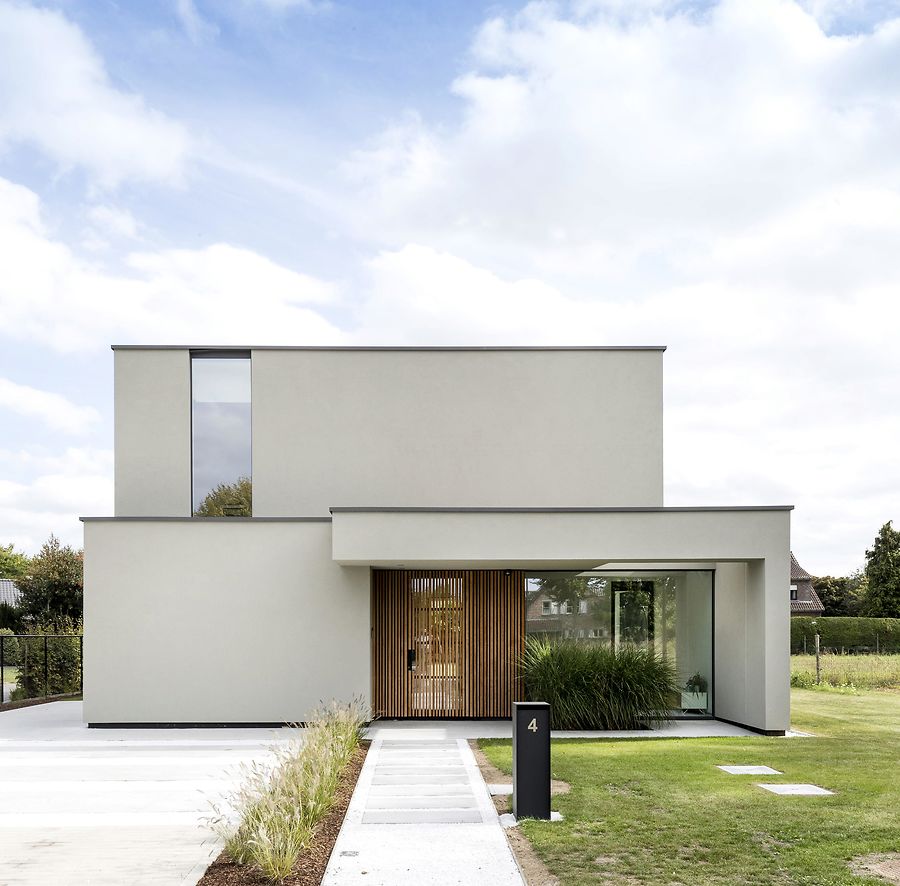 Net zoals andere woningen van Enplus Architecten wordt deze nieuwbouw in Gent ontworpen rond de verschillende plekgevoelens van de buitenruimtes. Luifels en inspringingen geven alle tuingedeeltes een eigen gevoel, en meteen wordt het gebouwde volume veel speelser. Dankzij dit spel konden we alle texturen net heel glad houden.