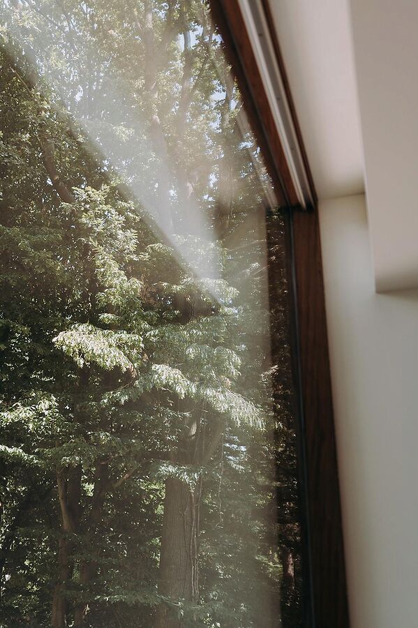 werd een patio voorzien waar zich een boom bevindt. De verdieping kreeg voor- en achteraan een verdiepingsbreed raam, waardoor je letterlijk tussen de kruinen kan vertoeven.